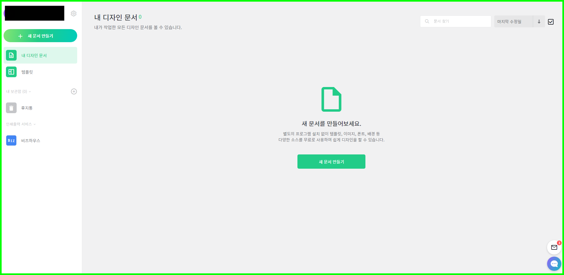 3. 가입을 하고 나면 아래처럼 디자인 툴 화면이 보여진다.