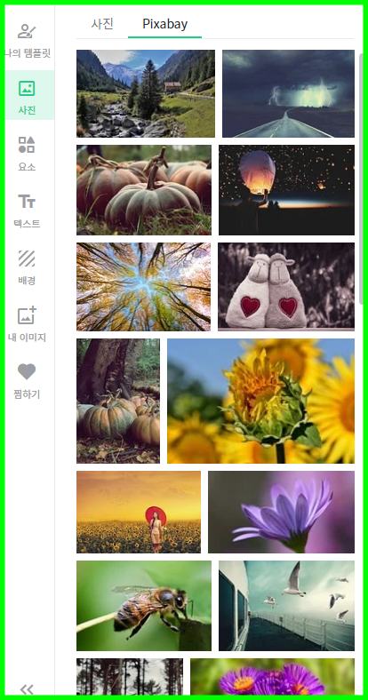 14. 템플릿 요소 중 사진을 선택하면 인터넷상의 이미지들을 쉽게 찾아 사용할 수 있다.