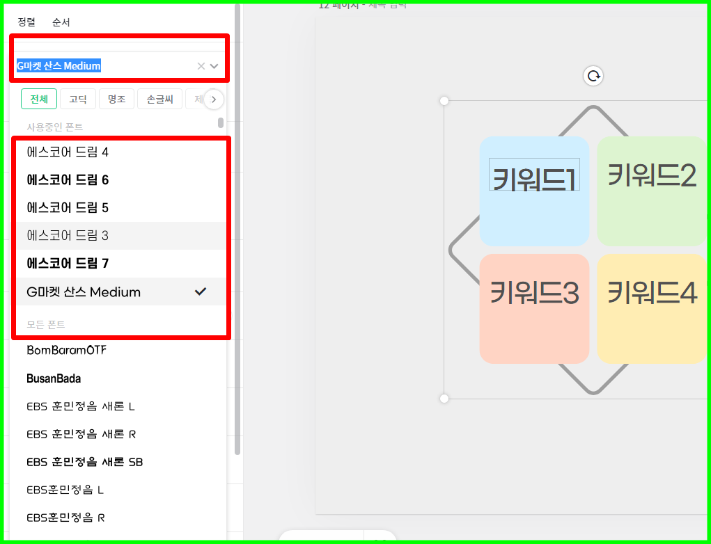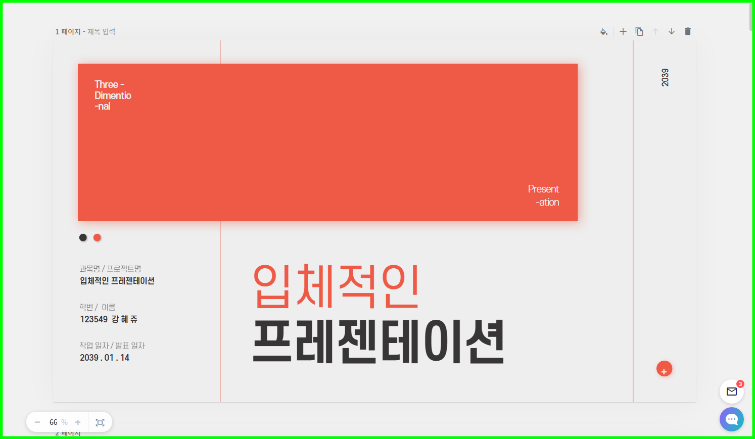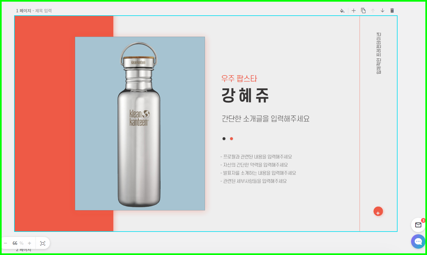 8. 아래 편집화면에서 사용자는 본인이 만들고자 하는 프리젠테이션 내용을 변경하면 된다.