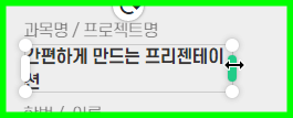 10. 텍스트를 모두 입력 후 좌우로 칸 조절을 통해 텍스트 길이를 조정 할수 있다.
