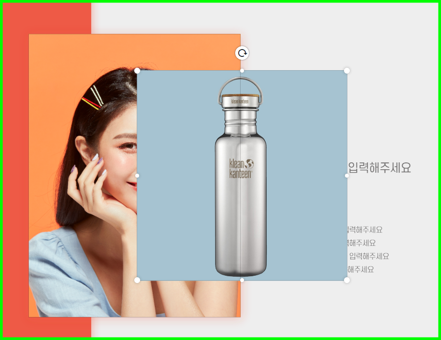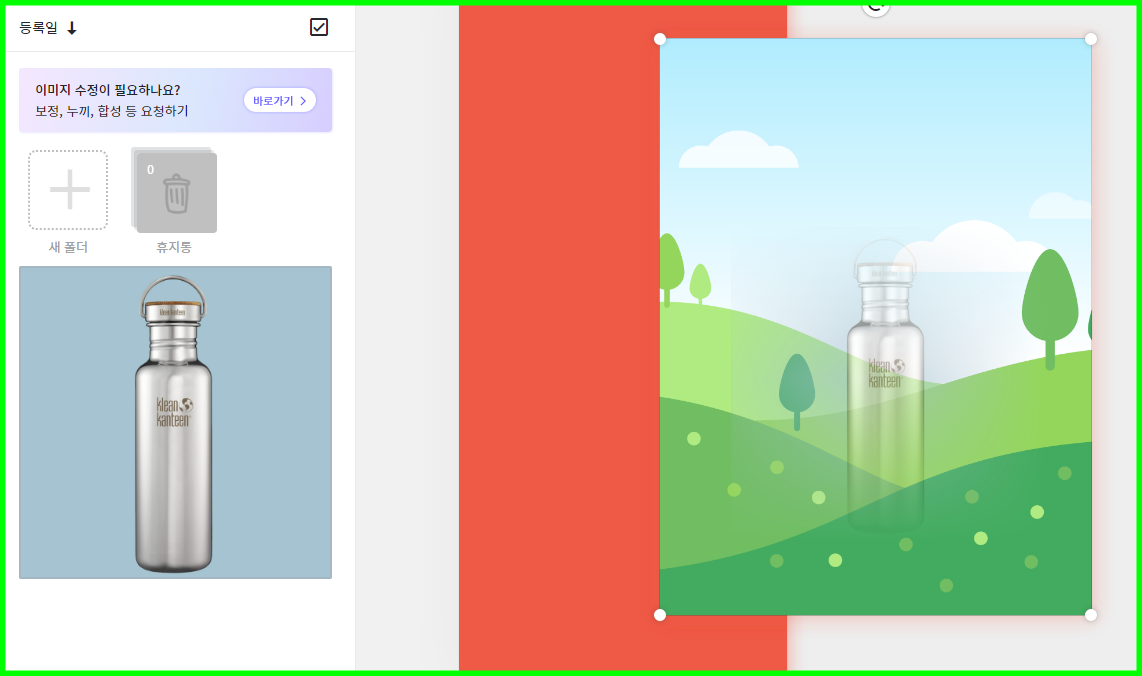 12. 이렇게 업로드한 이미지를 오른쪽 편집화면에 마우스로 드래그하여 이미지를 삽입한다.