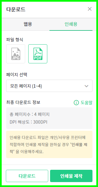 19. 모든 디자인을 제작 후 우측 상단에 다운로드 버튼을 통해 다운로드 할 수 있다.