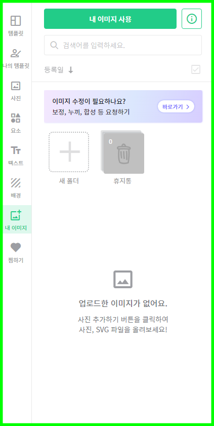 상단에 위치한 내 이미지 사용 버튼을 클릭하면 내 컴퓨터에 있는 이미지를 업로드 할 수 있다.