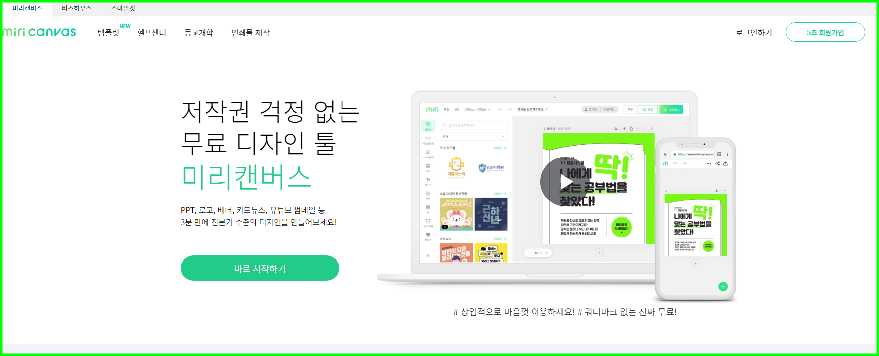 거의 모든 곳에서 활용되는 디자인 템플릿이 제공되기 때문에