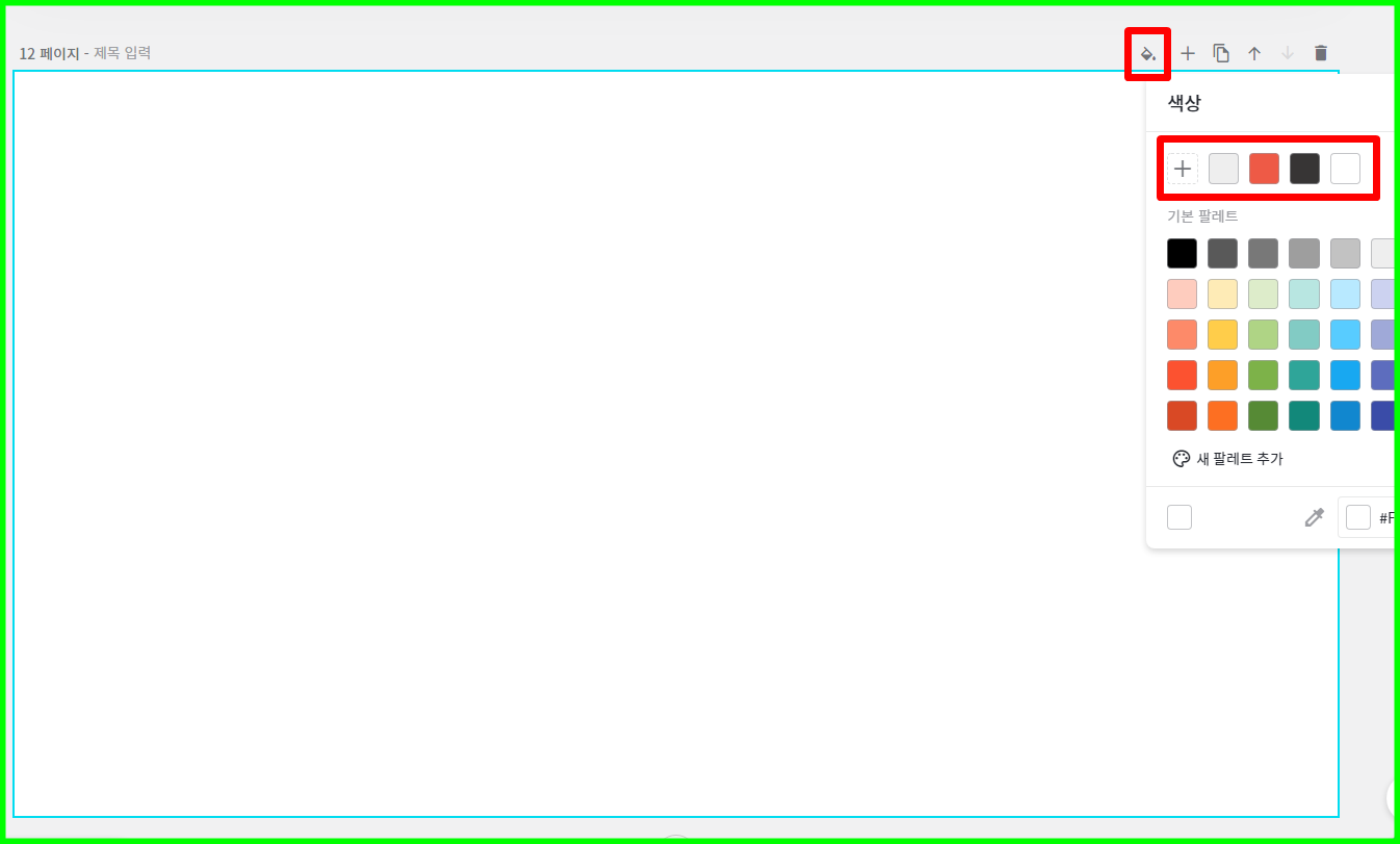 미리 캔버스에서는 색상을 선택하면 처음에 선택했던 테마에 사용한 색을 제공함으로서 사용자가 일정한 컨셉을 유지하도록 도와준다.