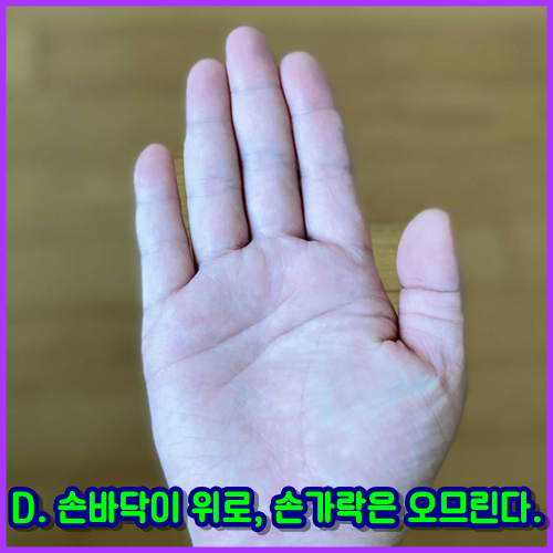 D. 손바닥이 위로, 손가락은 벌린다.