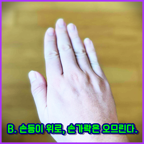 A. 손등이 위로, 손가락은 벌린다.