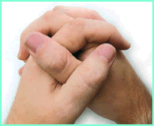 자연스럽게 깍지를 껴고 엄지손가락의 위치를 확인합니다.