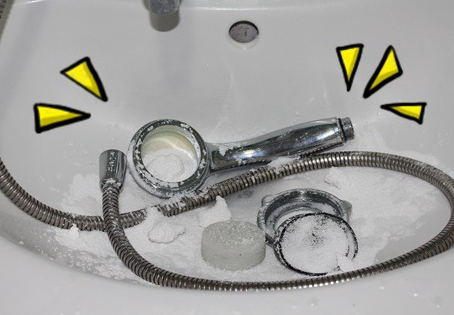 샤워기와 타일은 물때를 비롯한 칼슘 또는 석회 자국이 축적되는 곳입니다. 대야나 세면대에 뜨거운 물을 받으시고 식초와 베이킹 소다를 1:1로 혼합한 세제를 넣은 후, 샤워기를 한 시간 정도 담가 두시면 물때를 제거할 수 있습니다. 그래도 물때가 남아있다면 칫솔이나 이쑤시개를 활용하여 닦아주면 됩니다.